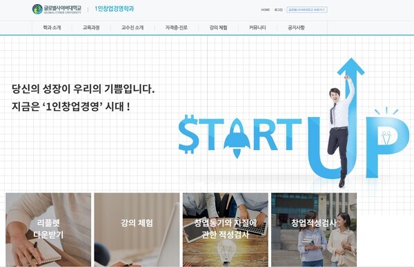 글로벌사이버대 1인창업경영학과 소개 화면. 사진=글로벌사이버대 제공