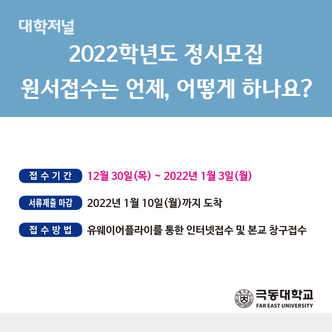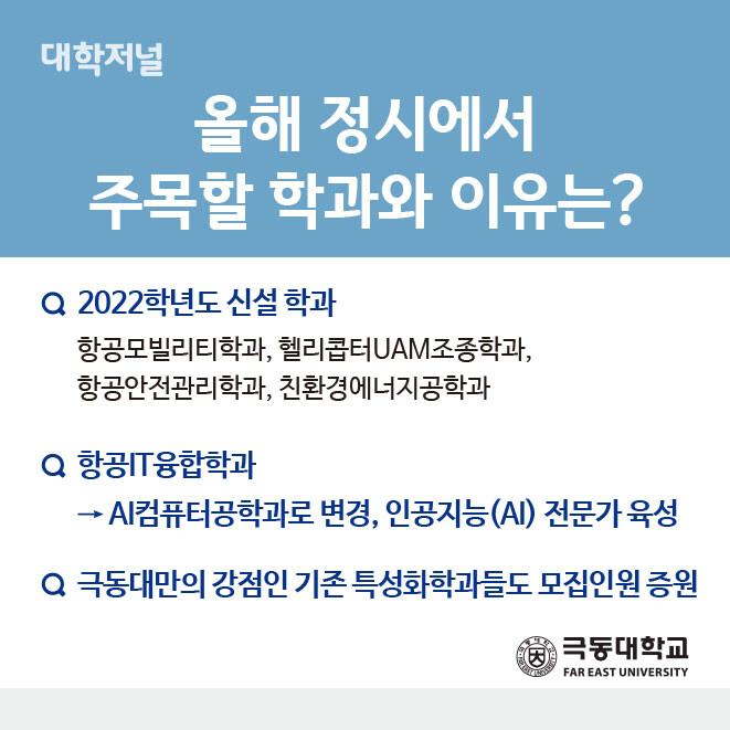 [카드뉴스] 한국교통대학교 2022 정시모집