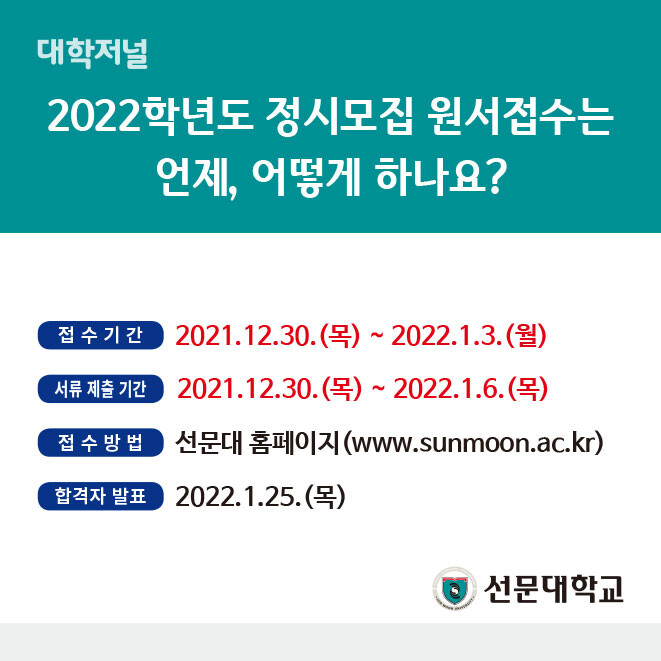 [카드뉴스] 선문대학교 2022 정시모집