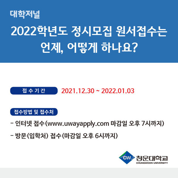 [카드뉴스] 한국교통대학교 2022 정시모집