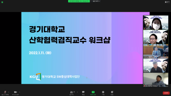 경기대 산학협력 겸직교수로 신규 임용된 23명 교수진 등 경기대 관계자들이 11일 비대면으로 열린 '산학협력겸직교수 워크숍'에 참여하고 있다. 사진=경기대 제공