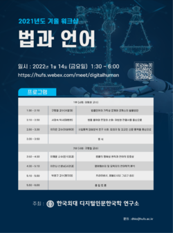 이번 워크숍의 주제는 ‘법과 언어’로, 법과 관련된 다양한 언어학적 주제들을 심도 있게 고찰할 예정이다.