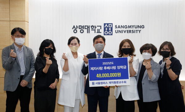 상명대는 서울캠퍼스에 재직 중인 동문 교수들이 '2022년도 제자사랑 후배사랑 장학금' 4800만원을 조성해 대학에 전달했다고 5일 밝혔다.
