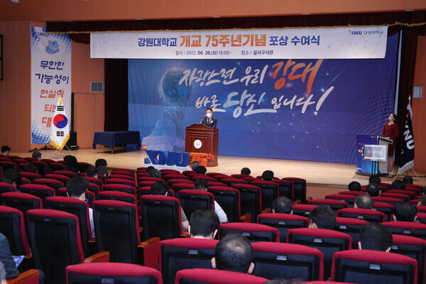 [대학저널 백두산 기자] 강원대학교는 28일 춘천캠퍼스 실사구시관에서 ‘강원대학교 개교 75주년 기념 포상 수여식’을 개최했다고 밝혔다.