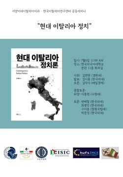 [대학저널 백두산 기자] 한국외국어대학교(HUFS)는 이탈리아연구센터(CISIC)가 오는 6일 오전 11시, 한국외대 대학본부 11층 대회의실에서 김시홍 이탈리아어과 교수의 ‘현대 이탈리아 정치론(Contemporary Italian Politics)’ 출간을 기념해 세미나를 개최한다고 5일 밝혔다.