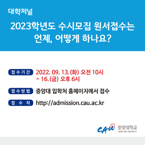 [카드뉴스] 중앙대학교 2023 수시모집