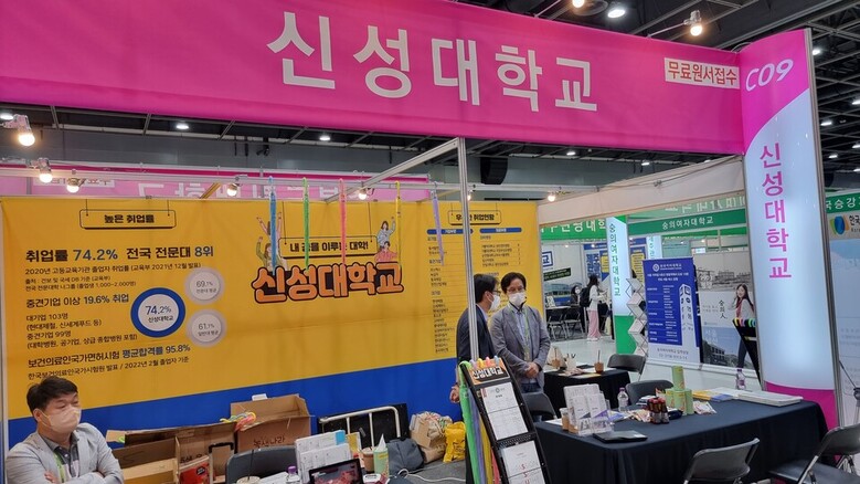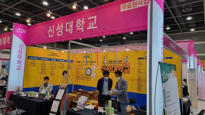 [대학저널 이지선 기자] 한국전문대학교육협의회가 주최하는 2023학년도 수시 전문대학 입학정보 박람회가 30일 개막됐다. 오는 2일까지 서울 서초구 양재 aT센터 제2전시관에서 열리는 전문대 수시박람회에는 전국 89개 전문대가 참가한다. 개막 첫날 박람회장은 수험생과 학부모들이 몰려 전문대 수시전형 정보를 얻기 위해 상담하는 등 현장 열기가 뜨겁다. 사진은 신성대 상담부스 모습.