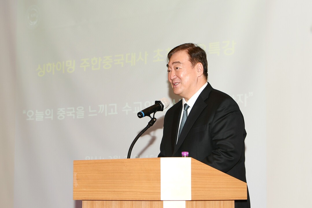강연에 앞서 정승렬 총장은 “1986년부터 외교관 생활을 하시면서 한국과 중국의 발전을 토대로 국가를 넘어선 인류공동체의 발전에 많은 관심을 가지고 계신 분”이라며 “귀한 걸음 해주신만큼 학생들이 지식과 소양을 넓히는 강연이 되었으면 한다”고 말했다.