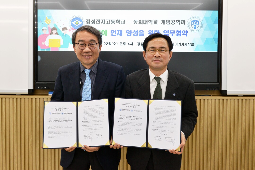 [대학저널 문차영 기자] 동의대학교는 23일 게임공학과가 경성전자고등학교와 전날 게임분야 기술인재 양성을 위한 업무협약을 체결했다고 밝혔다.