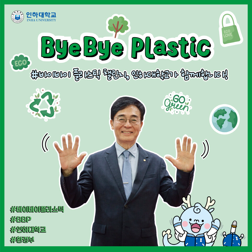조명우 총장은 김성찬 인하공업전문대학 총장의 지목을 받아 캠페인에 동참했다. ▲장 볼 때 장바구니 이용하기 ▲신선식품 주문할 땐 다회용 보냉백 사용하기 ▲물티슈, 플라스틱 빨대 사용 줄이기 ▲포장이 많은 제품 사지 않기 ▲중고 제품이나 재활용 제품 이용하기 ▲1회용품 대신 다회용품 사용하기 ▲배달 주문할 때 안 쓰는 플라스틱 받지 않기 ▲불필요한 비닐 쓰지 않기 ▲포장 없는 리필 가게 이용하기 ▲내가 쓴 제품은 분리배출까지 책임지기 등 바이바이 플라스틱 10대 수칙을 인하대 구성원들이 실천할 수 있도록 노력할 계획이다.