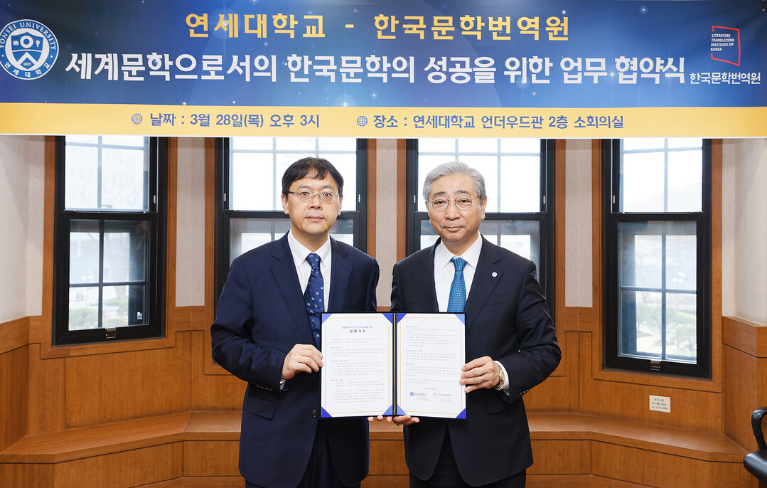 [대학저널 이선용 기자] 연세대학교가 한국문학번역원과 3월 28일 연세대 언더우드관에서 ‘세계문학으로서의 한국문학의 성공’을 위한 업무협약을 체결했다.