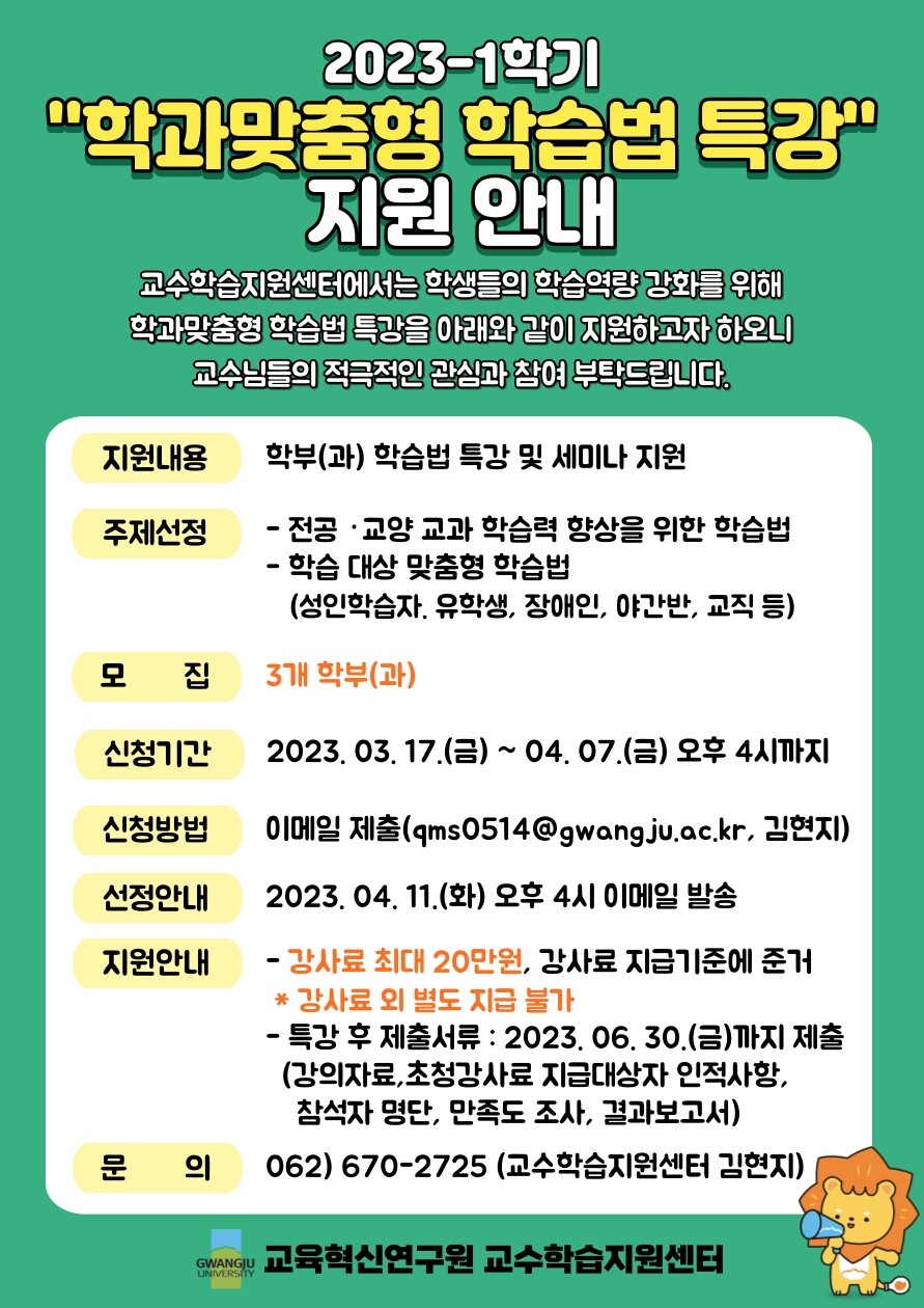 광주대학교 학과맞춤형 학습법 특강 지원 안내 포스터