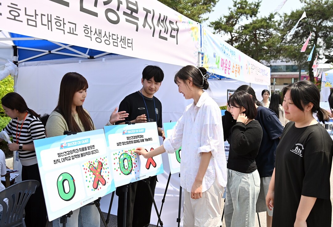 [대학저널 이선용 기자] 호남대학교 학생상담센터가 정신건강 문제 조기 발견 및 완화, 정신건강 정보제공을 통한 인식 제고를 위해 5월 21일 교내 자율주행시험장에서 ‘2024학년도 마음건강 캠페인’을 개최했다.