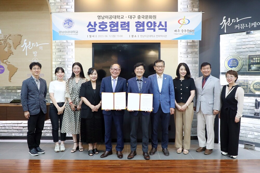 영남이공대가 12일 대구 중국문화원과 전문 인력 양성을 위한 업무협약을 체결했다. 사진=영남이공대 제공 |