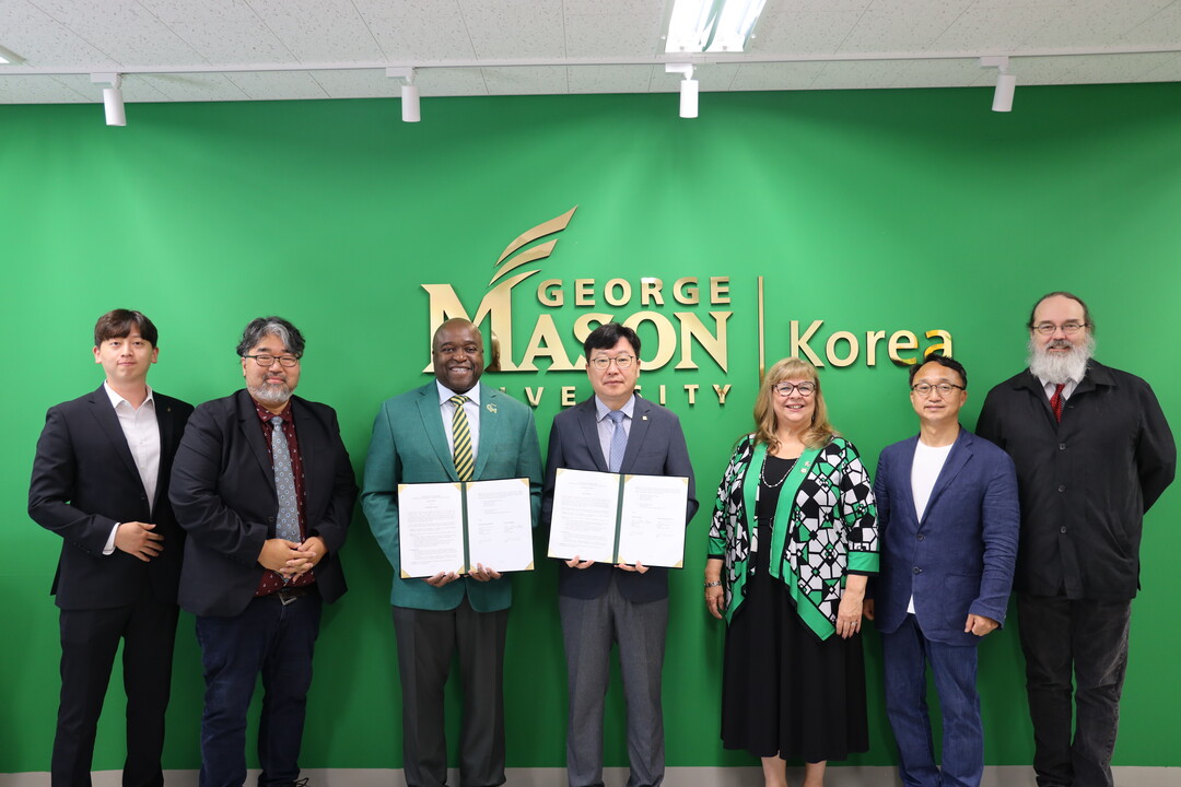 지난 13일 조지메이슨대 한국 송도캠퍼스에서 열린 협약식에는 조선대 김춘성 총장, 만화애니메이션학과 김일태 교수와 조지메이슨대 그레고리 워싱턴(Gregory Waashington) 총장, 자넷 뮤어(Janet Muir) 부총장, 제임스 케이시 버지니아 기능성게임연구소장, 남상엄 컴퓨터 게임디자인학부장이 참석했다.