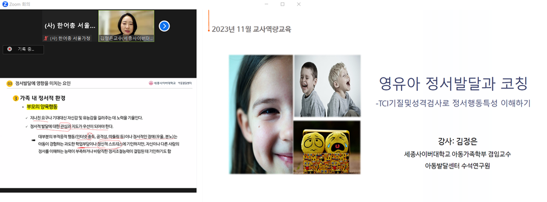 세종사이버대학교 아동학과 부설 아동발달센터가 교사 역량 강화를 위한 ‘영유아 정서발달과 코칭’ 비대면 교육을 실시했다. |