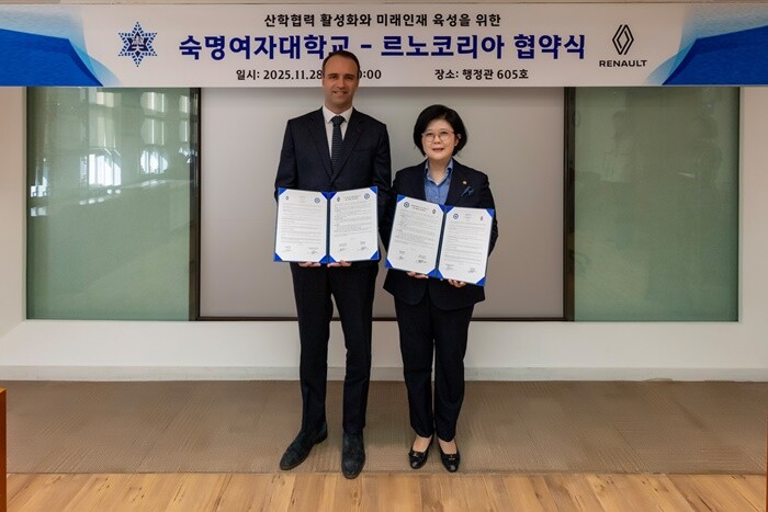 니콜라 파리 르노코리아 사장은 "숙명여대와의 협력은 르노가 추구하는 다양성과 포용성의 가치를 반영한 매우 의미 있는 이정표"라며 "대한민국을 대표하는 여성 인재들과 함께 미래 모빌리티 분야의 혁신을 만들어 가겠다"고 밝혔다.
