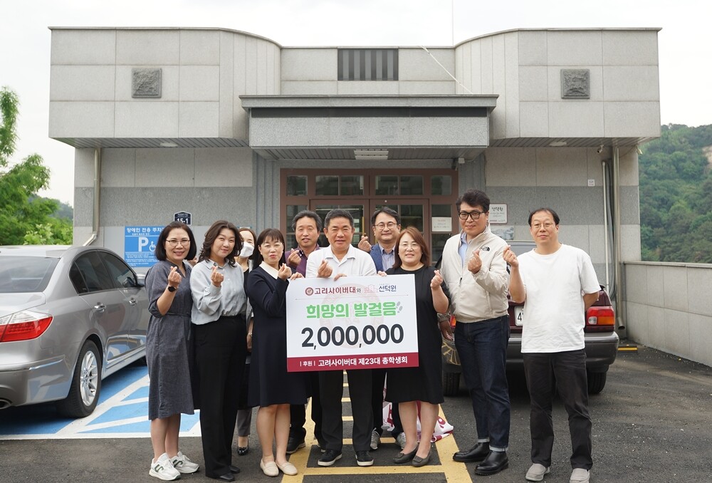 고려사이버대에 따르면 기부금은 지난달 13일 열린 고려사이버대 총학생회의 오프라인 행사인 ‘2023 KOCY STEP’의 일환으로 기획됐다. 건강 걷기와 심폐소생술(CPR) 체험 교육 행사를 통해 100만원을 마련했고, 이 소식을 들은 김진성 고려사이버대 총장이 자비로 100만원을 출연했다.