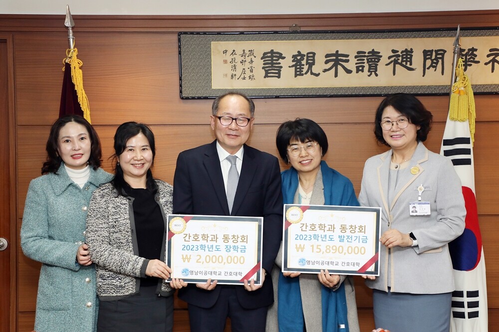영남이공대 이재용 총장은 “사회 각층에서 활약하며 대학을 빛내주고 계실 뿐만 아니라 매년 모교와 후배들의 발전을 위해 발전기금을 지원해주시는 간호학과 동창회에 감사하다”며 “기탁해주신 발전기금과 장학금은 대학과 간호학과의 발전, 간호 실무능력과 소통역량을 갖춘 명품 간호사 양성을 위해 잘 사용하겠다”고 말했다.