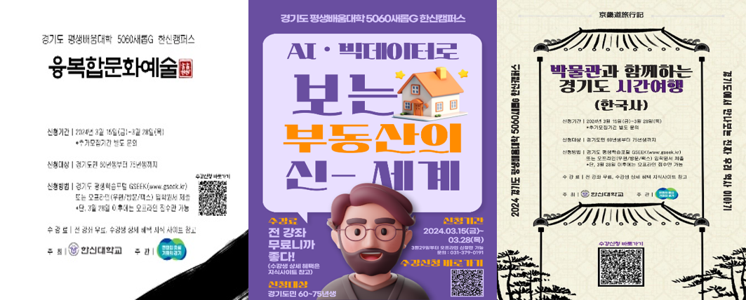2024년 경기도 평생배움대학 5060 새롭G 한신캠퍼스 강좌 포스터. |