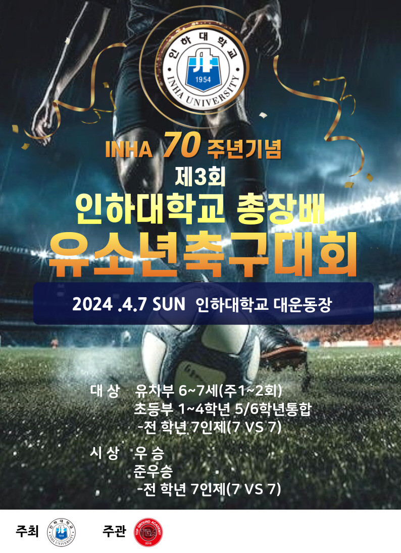 인하대가 주최하고 인천유나이티드 아카데미 미추홀지부가 주관하는 이번 대회는 4월 7일 인하대 대운동장에서 열린다.