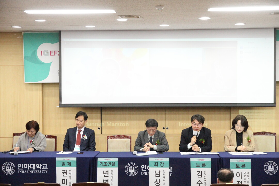 IGEF2023 주요 참석 내외빈이 토론·포럼을 펼치고 있다. 사진=인하대 제공 |