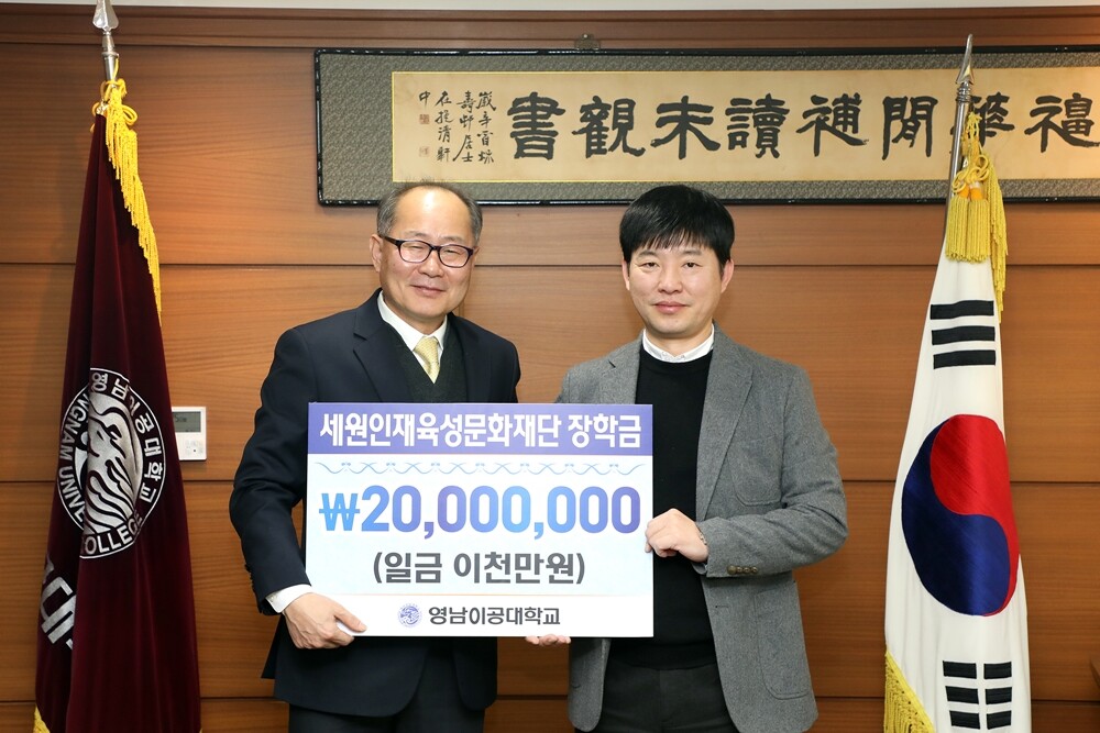 [대학저널 온종림 기자] 영남이공대학교가 20일 세원그룹으로부터 장학금 2000만원을 기탁받았다.