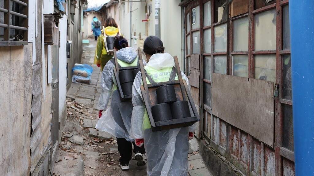 가톨릭대 학생 및 교직원 100여 명이 ‘제14회 가톨릭대 사랑의 연탄 나눔’ 봉사활동에 참여해 인천 학익동 일대 소외 이웃에게 연탄 4천 장을 전달했다. 사진=가톨릭대 제공 |