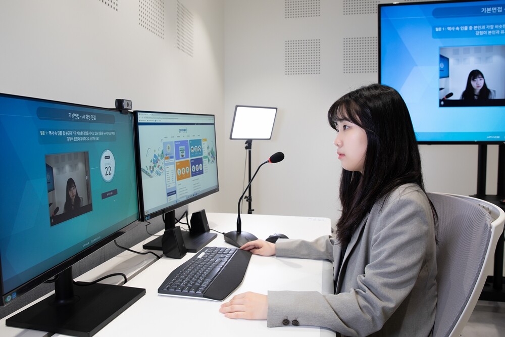 AI 스튜디오에는 학생들이 비대면 채용에 대비할 수 있는 디지털 환경을 구축했고, 최근 채용 트렌드인 AI 기반 면접도 체험하도록 준비했다.