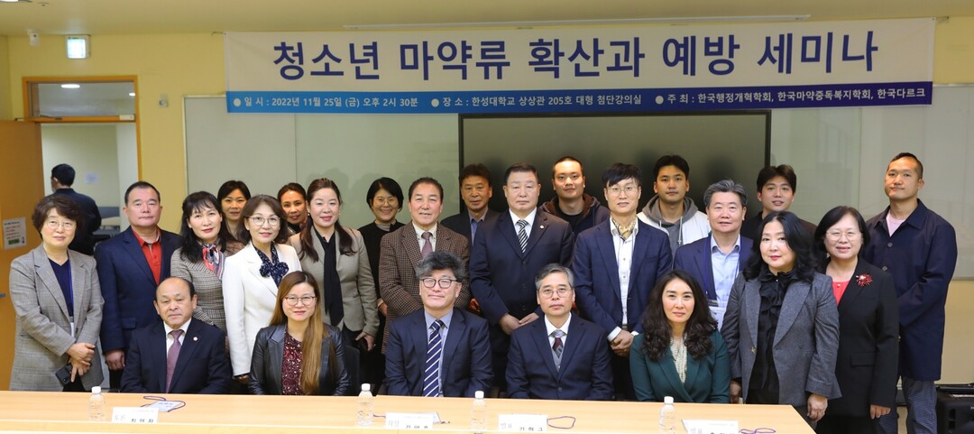 [대학저널 온종림 기자]한성대학교가 (사)한국행정개혁학회, 한국마약중독복지학회, 한국다르크와 함께 지난 25일 교내 상상관에서 ‘청소년 마약류 확산과 예방’ 세미나를 열었다.