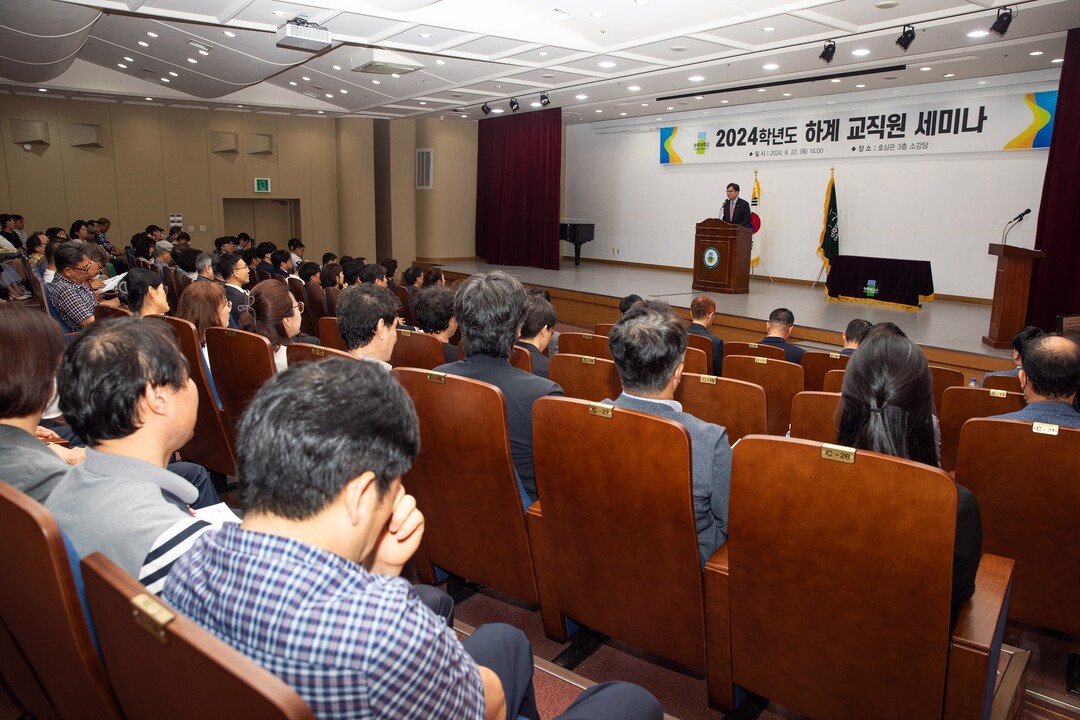 [대학저널 이선용 기자] 광주대학교는 8월 22일 오후 교내 호심관 3층 소강당에서 김동진 총장을 비롯해 주요 보직자 및 교직원 등 300여 명이 참석한 가운데 ‘2024학년도 하계 교직원 세미나’를 개최했다고 23일 밝혔다.