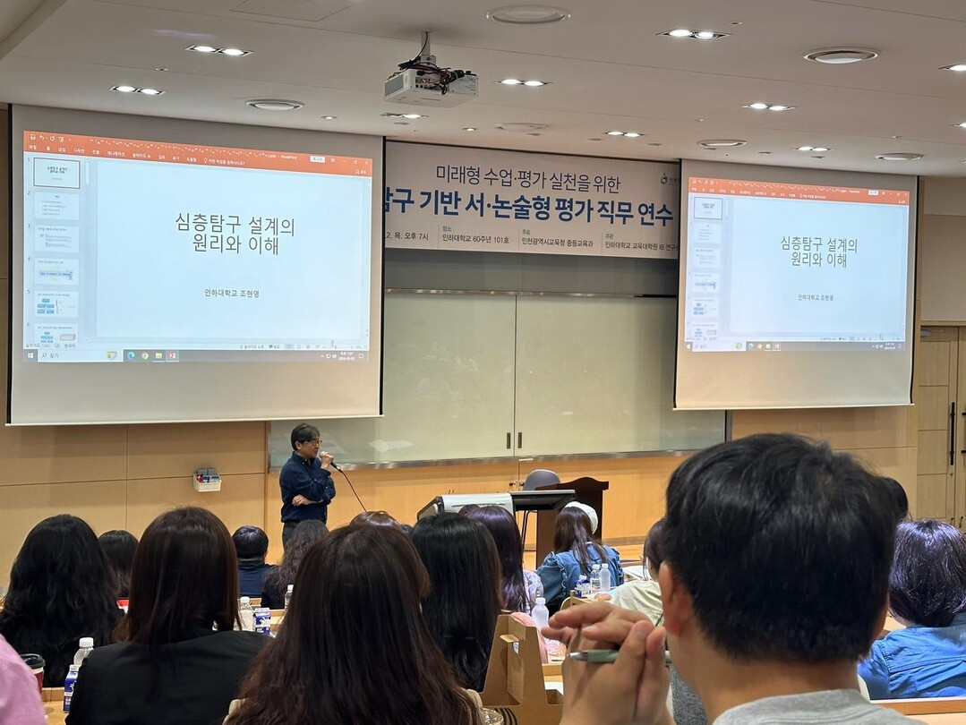[대학저널 이선용 기자] 인하대학교가 인천지역 중·고등학교 교사를 대상으로 미래형 수업·평가 실천을 위한 탐구 기반 서·논술형 평가 직무연수를 펼치고 있다.