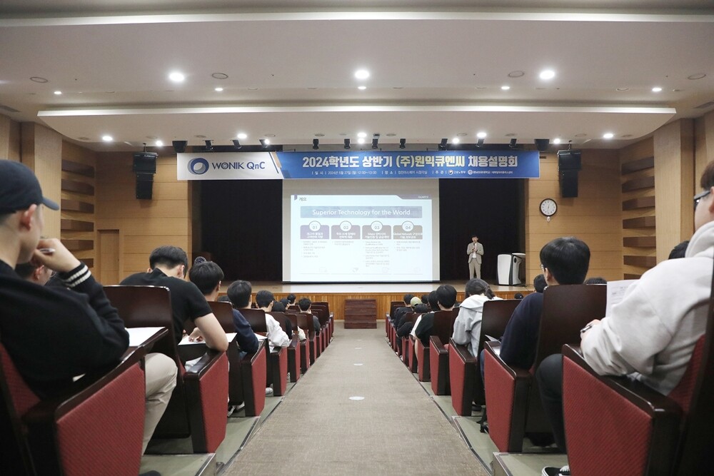 원익큐엔씨 채용설명회는 재학생과 졸업생, 지역청년에게 맞춤형 취업 정보를 제공해 기업 및 직무에 대한 이해를 높이고 취업 경쟁력을 강화하기 위해 마련됐다.