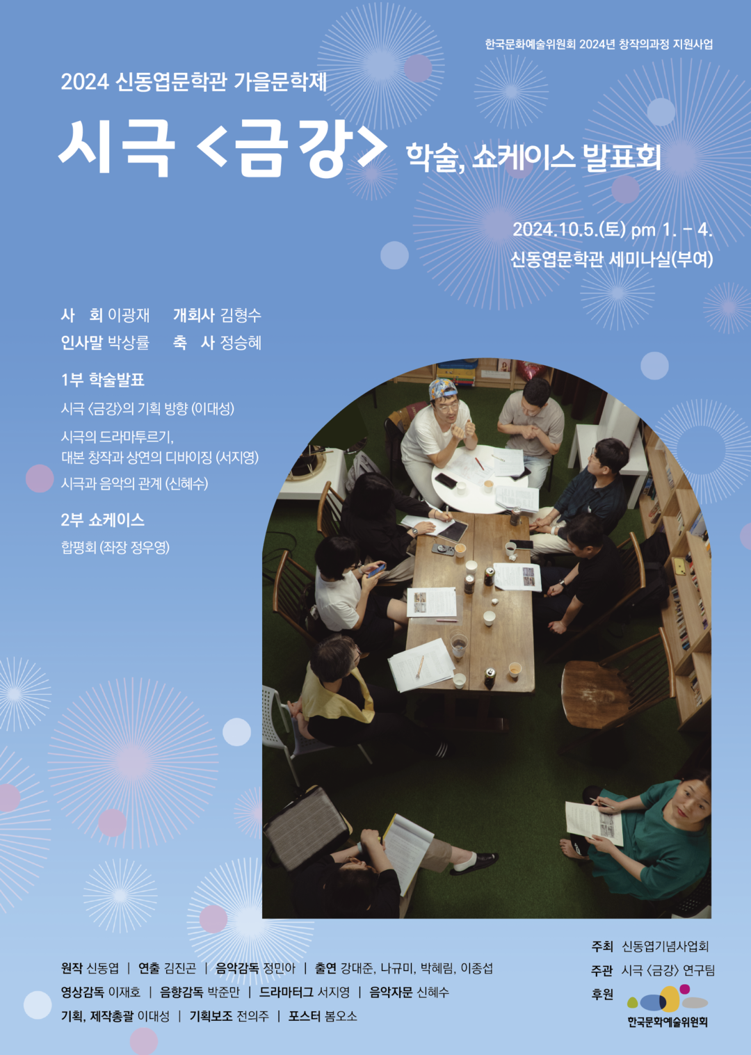 시극 ‘금강’은 시인 신동엽의 서사시 ‘금강’(1967)을 시 낭송과 극 대사, 연기, 음악, 영상 등으로 재해석해 무대화한 작품으로, 2회의 쇼케이스를 통해 관객 의견을 담아 내년 본 공연에 반영할 계획이다.