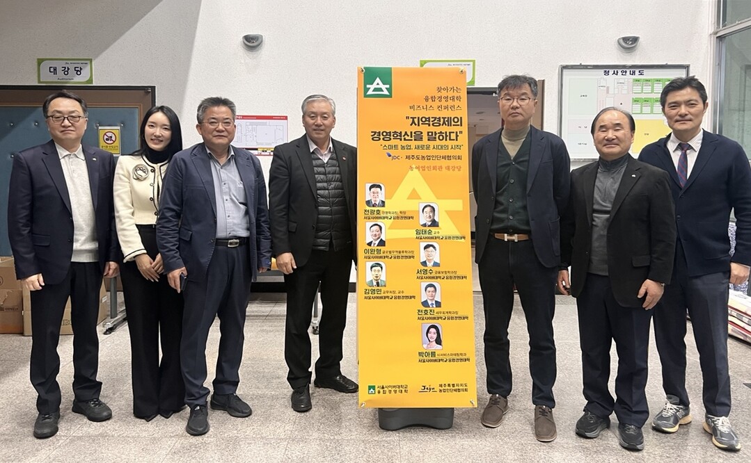 [대학저널 이선용 기자] 서울사이버대학교 융합경영대학이 제주특별자치도 농업인단체협의회와 함께 지난 12월 11일오후 1시, 찾아가는 융합경영대학 비즈니스 컨퍼런스를 성공적으로 개최했다.