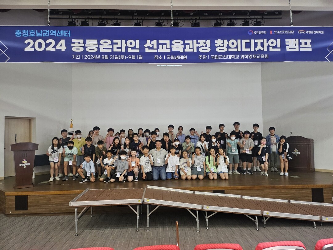 국립군산대 과학영재교육원이 개최한 2024 창의디자인 캠프 참가자들이 기념촬영을 하고 있다. 사진=국립군산대 제공 |