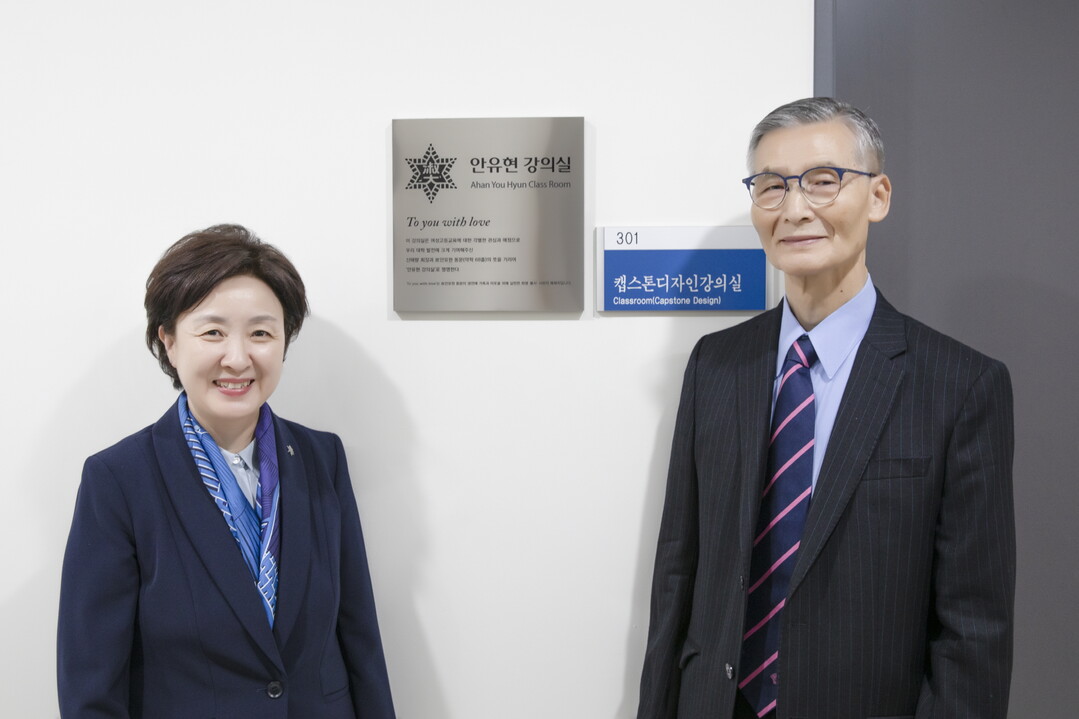 장윤금 총장은 “원래 기부 소식을 들으면 기뻐야 하는데 이번에는 가슴이 참 뭉클했다”며 “안유현 선배님의 따뜻한 마음과 사랑이 이 강의실을 오가는 학생들에게 고스란히 전해질 것 같다”고 말했다.
