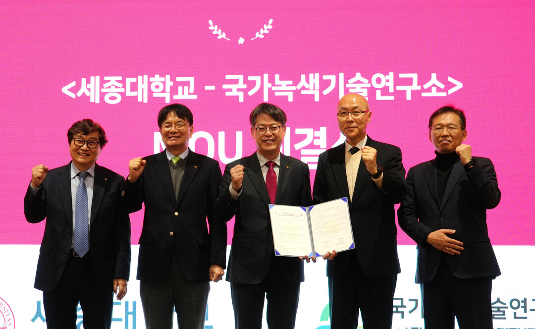 협약식에는 세종대 엄종화 총장, 홍우영 부총장, 전의찬 책임 교수, 국가녹색기술연구소 이상협 소장 등 양측 관계자들이 참석했다.