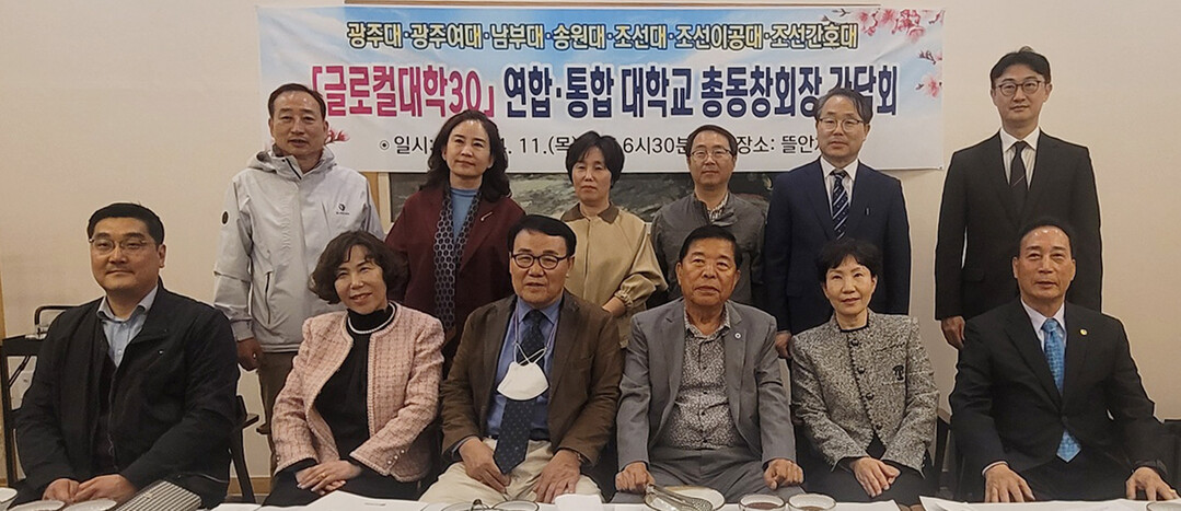 지난 11일 오후 조선대학교 총동창회는 글로컬대학30 공동 신청 대학교인 5+2 연합·통합대학(조선대·광주대·광주여대·남부대·송원대·조선이공대·조선간호대) 총동창회와 함께 간담회를 개최했다.