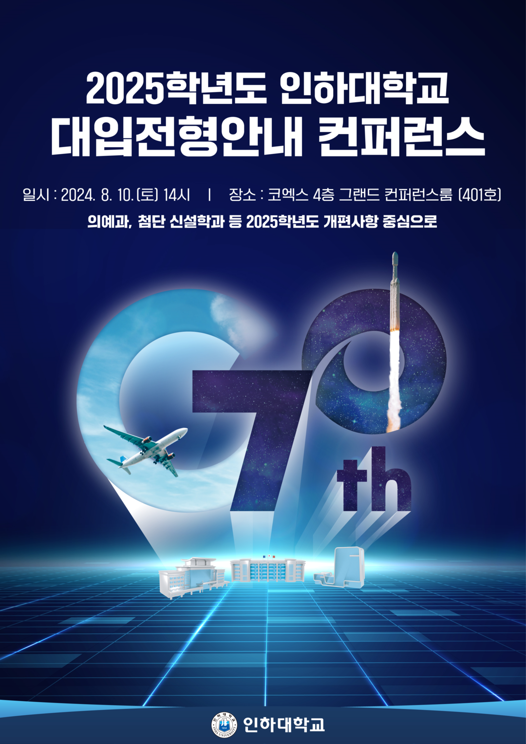 인하대는 오는 10일 오후 2시 코엑스 4층 그랜드 컨퍼런스룸(401호)에서 수험생, 학부모, 교사 500여명을 대상으로 대입전형 안내 컨퍼런스를 진행한다.