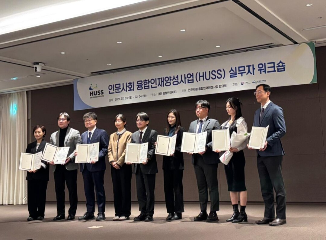 한국연구재단과 교육부가 주최하는 ‘인문 사회 융합인재 양성사업(HUSS)’은 대학과 전공의 경계를 허물어 인문 사회 융합 교육 체제를 구성해 인문 사회 분야 선도 인재를 양성하는 사업으로, 주관대학인 국민대를 비롯하여 덕성여대‧울산대‧인하대‧조선대 등이 참여하고 있다. 이 사업의 원활한 추진을 위해 지난 2월 3일과 4일 대전에서 실무자 워크숍와 우수활동자에 대한 시상식이 진행됐다. 이 시상식에서 국민대 문익준 교수와 박창건 교수가 업무 유공으로 교육부장관상을 수상했다.