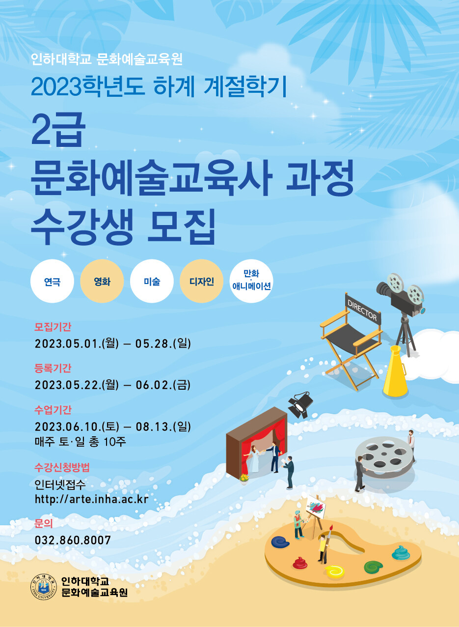 [대학저널 온종림 기자] 인하대학교 문화예술교육원이 2023학년도 하계 계절학기 문화예술교육사 2급 과정 수강생을 모집한다.
