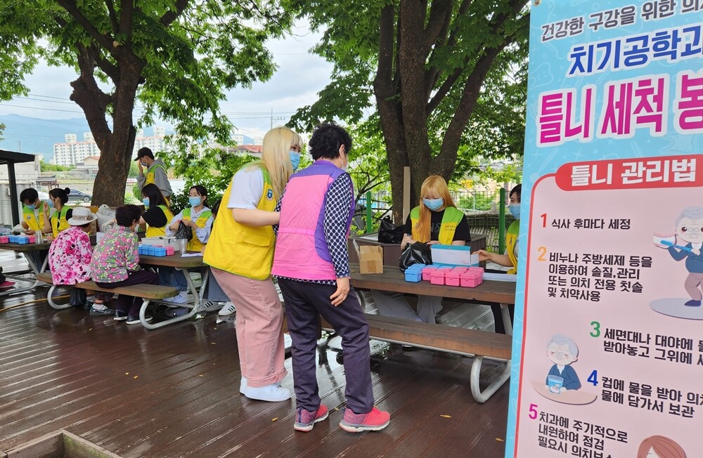 치기공학과 학생들은 지난 4월 26일부터 이달까지 원주 문막 후용2리 마을과 원주가톨릭종합사회복지관 등을 찾아가 모두 93명의 어르신들께 구강관리 방법을 알려줬다