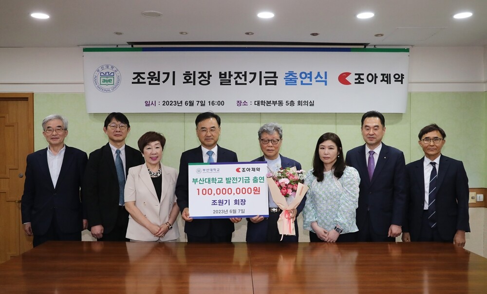 [대학저널 온종림 기자] 조아제약 조원기 회장이 7일 부산대학교에 약학대학 지원을 위한 1억 원의 발전기금을 기부했다.