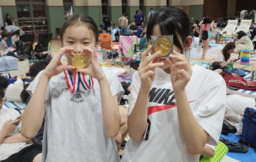 금매달 획득을 기뻐하는 경동대스포츠클럽 유소년 수영 선수들. 사진=경동대 제공 |