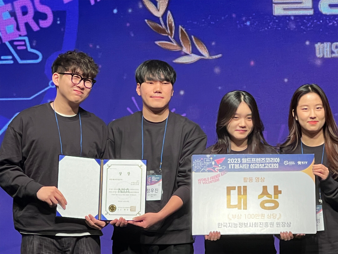 NIA는 11월 30일 서울 성암아트센터에서 ‘2023년 월드프렌즈 IT봉사단 성과보고회’를 개최하여 GIST를 비롯한 6개 협력 대학의 오프라인 봉사팀과 온라인 봉사팀 등 총 209명의 봉사단원을 대상으로 우수활동 팀을 시상하고 해단식을 가졌다.