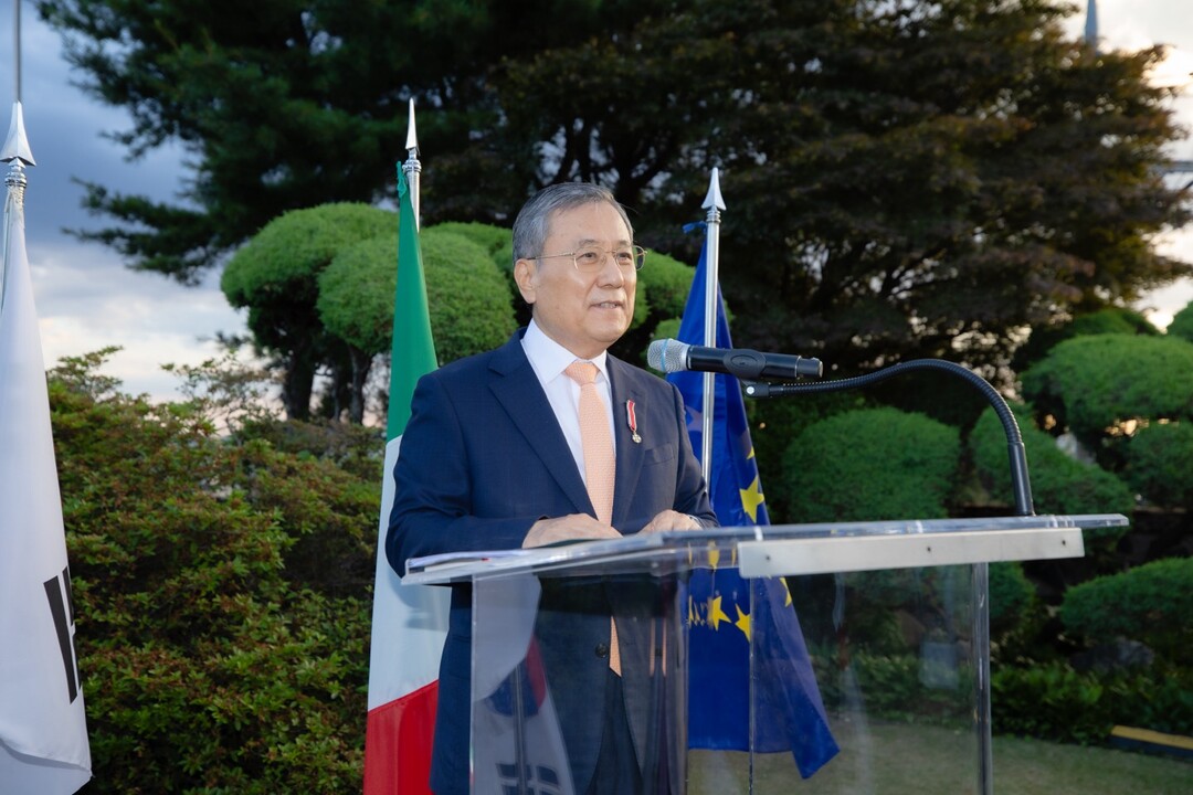 훈장 수여식은 3일 에밀리아 가토 주한 이탈리아 대사가 주관하는 이탈리아 국경일 리셉션에서 열렸다. 신 전 총장이 수훈한 국가 친선 훈장은 ‘이탈리아의 별 기사 훈장(Ordine di Stella d’Italia)으로 이탈리아와 특정 국가 간 교류에 이바지한 사람에게 주어진다.