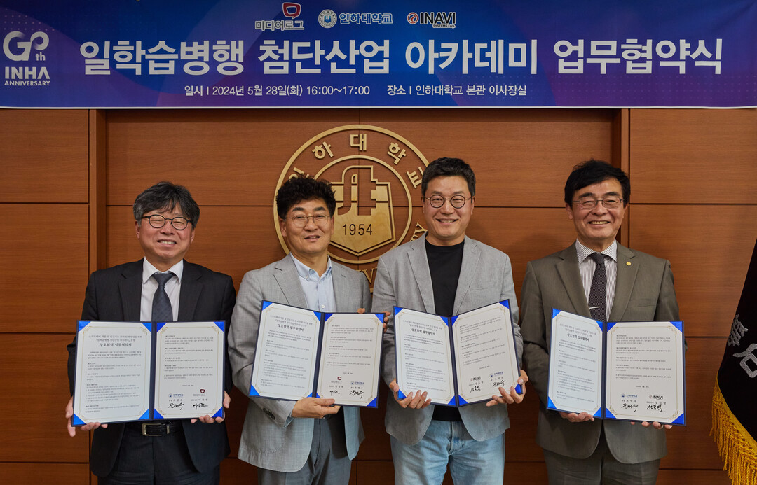 인하대는 이번 협약에 따라 ㈜미디어로그, ㈜아이나비시스템즈와 일학습병행 첨단산업 아카데미를 함께하며 소프트웨어(SW) 개발·인공지능(AI) 분야 전문 인력 양성을 위해 산학협력을 이어가기로 했다.
