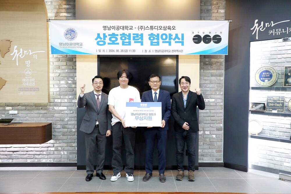 영남이공대가 지난 6월 28일 천마역사관에서 스튜디오삼육오와 채용연계형 산학협력 협약을 체결했다. 사진=영남이공대 제공 |