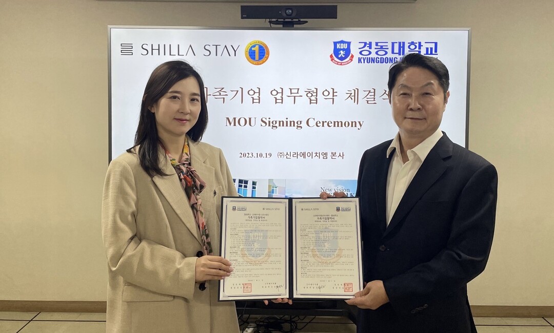 [대학저널 온종림 기자] 경동대학교가 지난 19일 서울 중구 신당동 ㈜신라에이치엠 본사에서 신라스테이와 가족기업 협약을 체결했다. 협약식에는 신라스테이 박상오 대표와 경동대 김다정 호텔관광경영학 교수 등이 참석했다.